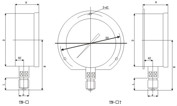 型號 | D | d | L | d0 | B | H | d2 | H1 | H2 | YN-60 | φ60 | M14×1.5 | 14 |